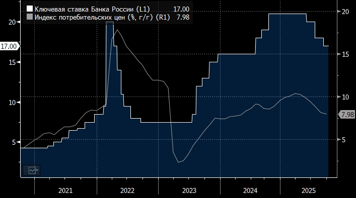 Банк России, вероятнее всего, сохранит ключевую ставку на уровне 17% годовых на заседании 24 октября, полагает аналитик Freedom Finance Global Владимир Чернов.