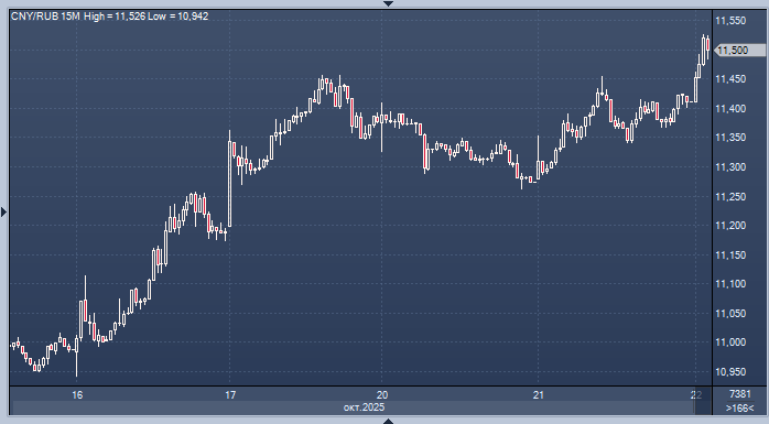 "В такой ситуации, до выплаты налогов, диапазон 11-11,5 руб. за юань может остаться актуальным для китайской валюты, тогда как в начале ноября юань может сместиться в диапазон 11,5-12 руб. за юань", - отмечает аналитик ПСБ.