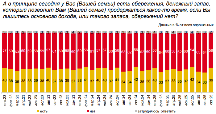 Доля участников опроса, которые не имеют финансовой «подушки» безопасности, снизилась до 58%.