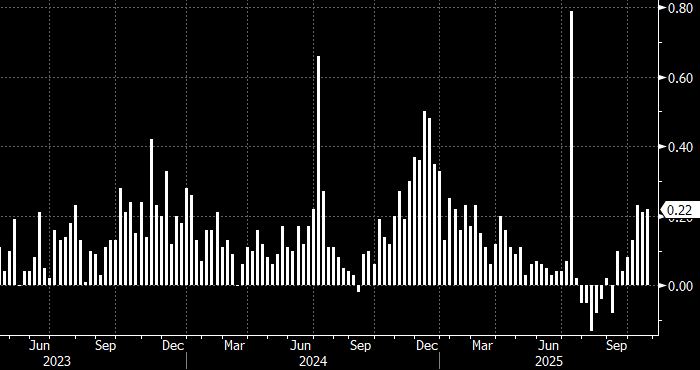 На неделе до 20 октября потребительская инфляция в России ускорилась до 0,22% н/н с 0,21% н/н в предыдущий отчетный период, сообщает Росстат. Таким образом, показатель остается выше 0,2% н/н уже три недели подряд, чего не наблюдалось с конца 2024 года.