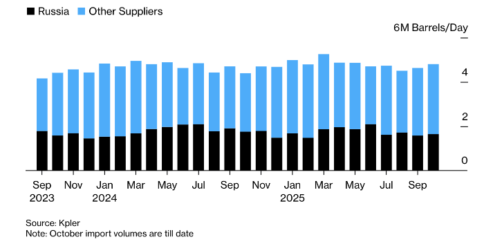 Сколько нефти покупала Индия у России. Источник: Bloomberg