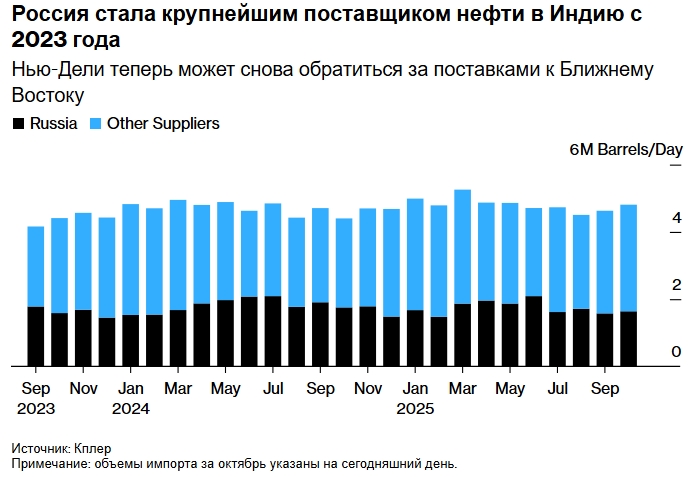 Хотя торговое соглашение между странами ещё не подписано, крупные индийские нефтеперерабатывающие компании объявили о почти полном прекращении импорта российской нефти после введения санкций против ПАО «Роснефть» и ПАО «Лукойл» со стороны США.