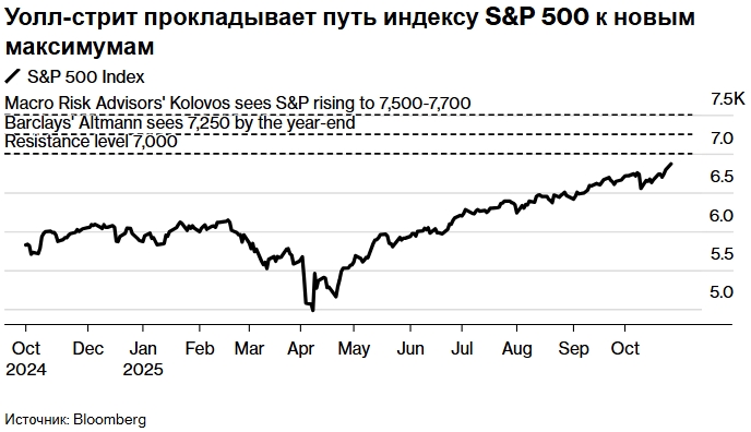 Майкл Романо, руководитель отдела продаж деривативов на акции хедж-фондов в UBS Securities, отметил в воскресной записке для клиентов: «Нет недостатка в катализаторах для повышения риска. То, что ранее казалось маловероятным достижением в 7100 пунктов к концу года, теперь стало базовым сценарием, поскольку рынок демонстрирует значительный потенциал роста в следующем году».