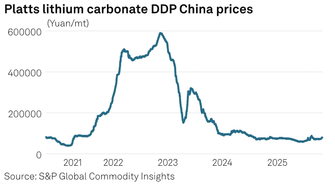 29 октября Platts оценило аккумуляторный карбонат лития в 81 700 юаней/т на условиях поставки DDP Китай, что на 6,8% больше, чем за предыдущую неделю, и на 11,1% больше, чем месяц назад.