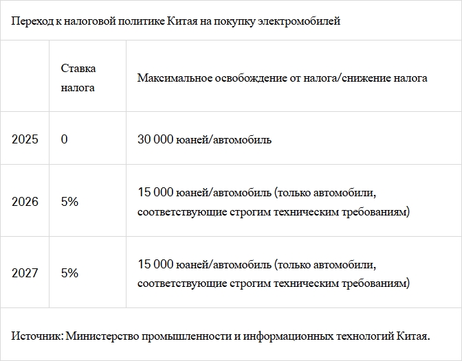 Налоговые льготы продлевались несколько раз, что способствовало росту потребления электромобилей внутри страны после того, как в 2023 году завершилась национальная программа субсидирования электромобилей.
