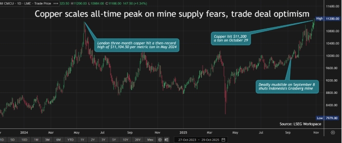 В то время как перспективы спроса на медь улучшаются, проблемы с её предложением нарастают. По данным Международной исследовательской группы по меди, серия аварий на медных рудниках в этом году, вероятно, приведёт к дефициту рафинированного металла в 2026 году.