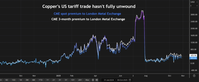 Последняя доступная картина позиционирования, датированная концом сентября, показывала, что фонды осторожно возвращаются на рынок с длинной позицией после обвала премии США в июле, когда администрация Трампа отложила решение по тарифам на рафинированную медь до следующего года.
