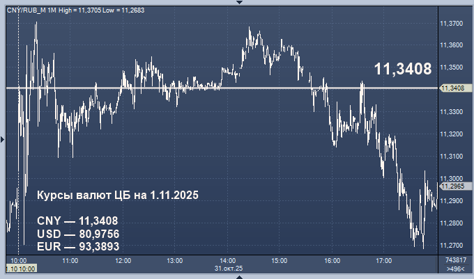 "В четверг рубль тяготел к ослаблению, - отмечают эксперты. - Умеренное давление на российскую валюту могло оказать снижение рыночных ставок. Сегодня курс CNY/RUB находится у 11,34 руб./юань. Другие валюты EM с утра преимущественно слабеют к доллару США. В целом курс в текущих условиях попробует закрепиться выше 11,3 руб./юань".