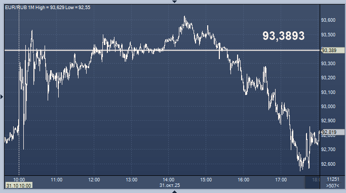 Китайский юань укреплялся на Московской бирже утром в пятницу, а рубль падал на фоне дешевеющей нефти, писал Интерфакс. Но к настоящему времени курс вернулся к уровню открытия торгов. Недельное снижение рубля составило 1,8% на закрытии позиций после налоговых выплат октября и перед длительными праздничными выходными.