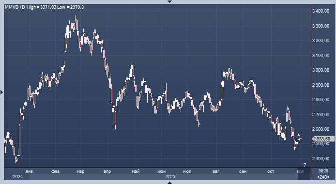 График индекса Мосбиржи интервалами в 1 день