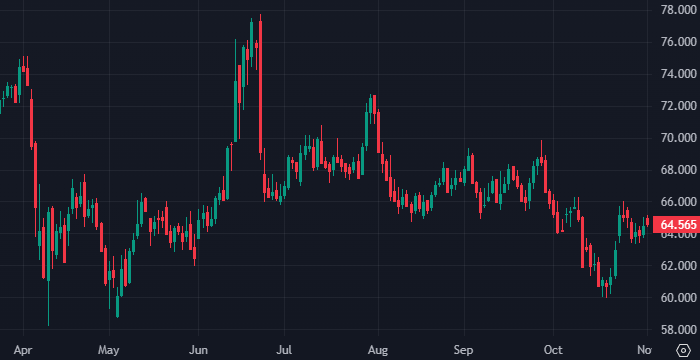 За последние три месяца котировки Brent снизились примерно на 10% на фоне ожидавшегося избытка предложения. Однако затем они отскочили, когда США ввели санкции против «Роснефти» и «Лукойла», породившие опасения перебоев с поставками из России.