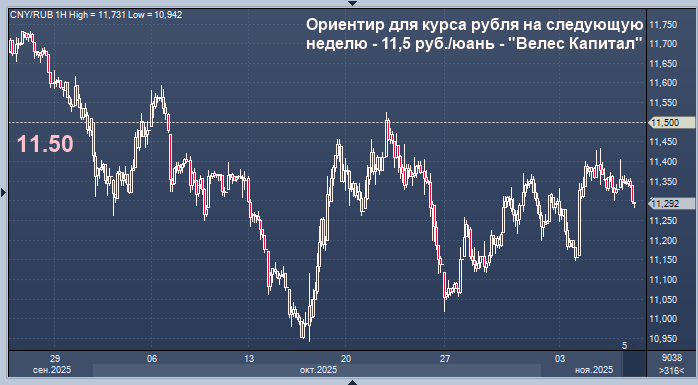 Ориентиром для курса рубля на следующую неделю выступает отметка 11,5 руб./юань, говорится в комментарии аналитика инвесткомпании "Велес Капитал" Елены Кожуховой.