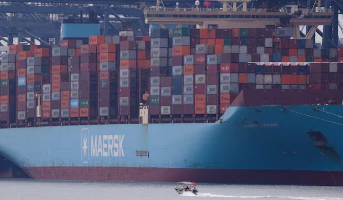 Лодка проходит мимо грузового судна с контейнерами в терминале порта Яньтянь в Шэньчжэне, провинция Гуандун, Китай, 30 октября 2025 года. REUTERS