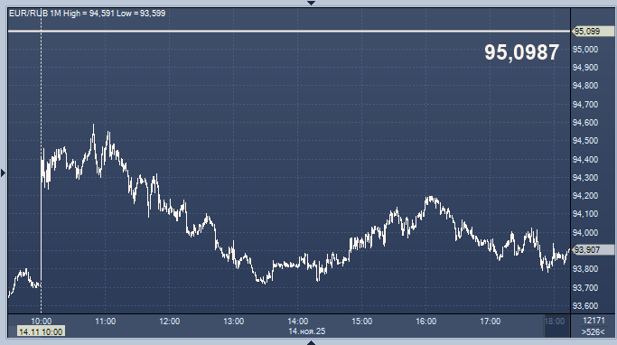 - 95,0987 рубля за 1 евро