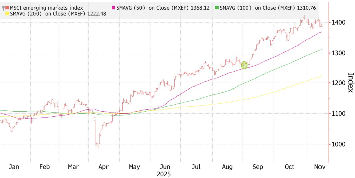 Индекс акций MSCI EM вырос на 0,1%, сократив ранний подъем до 0,7%, — рынки ждут отчетности Nvidia — «барометра» ИИ‑сектора — на этой неделе, что повлияет на техсектор в Северной Азии.