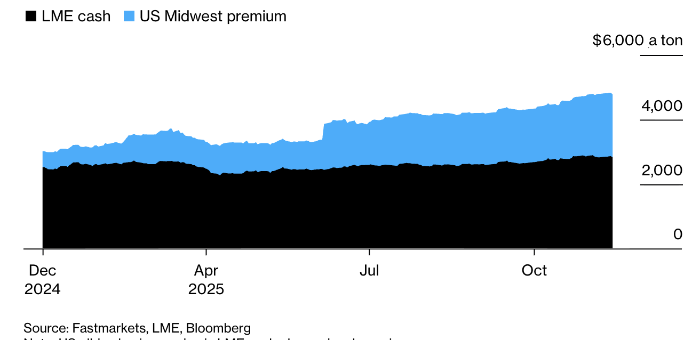 На этом фоне Rio Tinto, по данным источников, ввела дополнительную комиссию на свои поставки в США, ссылаясь на дефицит запасов и разрыв между спросом и предложением. Эта новая наценка, составляющая от 1 до 3 центов за фунт, накладывается поверх уже существующей премии.