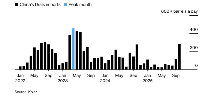 В отличие от Индии, Китай до сих пор избегал угроз Трампа о введении вторичных пошлин на закупки российской нефти. Пекин, по-видимому, воодушевлен своим успехом в разрядке торговой войны с Вашингтоном, в ходе которой Трамп ненадолго ввел пошлины в размере 145% на китайские товары.