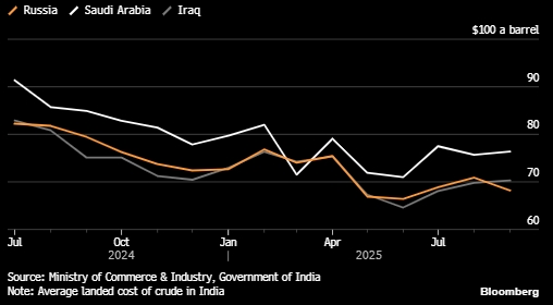 До введения санкций против «Роснефти» и «Лукойла» скидка на Урал составляла около 3 долларов за баррель. После введения санкций США, которые дополняют аналогичные ограничения, наложенные на ПАО «Газпром нефть» и ПАО «Сургутнефтегаз», индийские нефтеперерабатывающие заводы приобрели больше сырой нефти из других регионов, включая Ближний Восток.