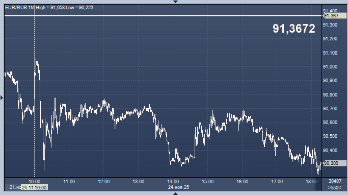 По мнению экспертов "Интерфакс-ЦЭА", росту курса нацвалюты способствуют, прежде всего, ожидания участников рынка прогресса в переговорах по мирному урегулированию конфликта вокруг Украины. Кроме того, поддержку рублю оказывают активизировавшиеся продажи валютной выручки экспортерами перед налоговым периодом ноября, пик которого придется на конец этой недели.