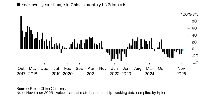 Поставки СПГ в Китай в ноябре сократятся на 5.5%. Источник: Bloomberg