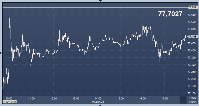 - 77,7027 рубля за 1 доллар