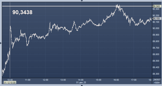 - 90,3438 рубля за 1 евро