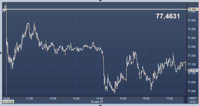 - 77,4631 рубля за 1 доллар