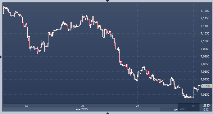 После публикации агентством Reuters данных о торгах государственных банков юань немного ослаб до 7,072 за доллар. Он уже упал на утренних торгах после неожиданно мягкого установления торгового коридора, что сбило его с 14-месячного максимума.