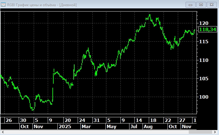 Закрепление индекса RGBI выше уровня в 118,2 пункта откроет ему дорогу к 118,95 пунктов, говорится в комментарии аналитика Людмилы Рокотянской на портале БКС Экспресс.