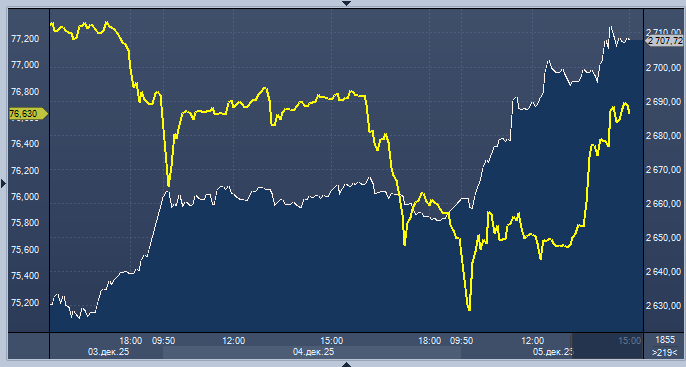 Корреляция индекса Мосбиржи и курса доллар/рубль игтервалами в 5 минут