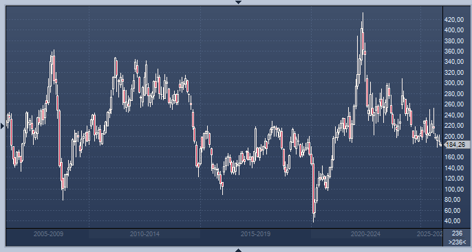 Биржевая ценна бензина в США интервалами в 1 неделю