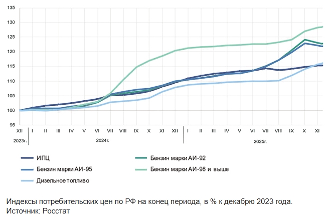 В России, напротив, розничные цены на бензин растут. С начала года цены увеличились на 11,2%, что более чем вдвое превышает общую инфляцию (5,27%). За год бензин подорожал на 12,66%, в то время как инфляция составила 6,61%. На начало декабря средняя стоимость литра бензина в России составила 64,87 рубля, что эквивалентно примерно 3,23 доллара за галлон.