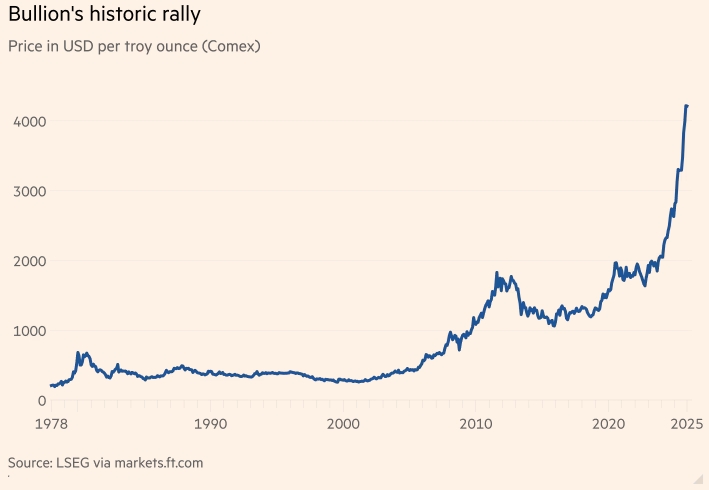 История знает циклы подъёмов и спадов на рынке золота, включая 1980 год, когда цены достигли пика из-за инфляции и нефтяного кризиса. После финансового кризиса 2008 года цены также выросли и достигли максимума в 1830 долларов за унцию в сентябре 2011 года, после чего снизились на 30% в течение следующих двух лет.