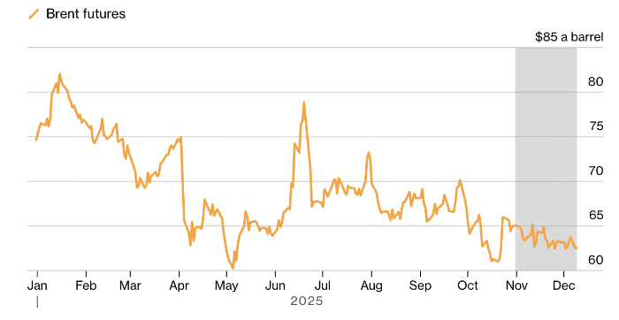 EIA (США): В последнем краткосрочном прогнозе EIA ожидает, что мировые запасы нефти продолжат расти в течение всего 2026 года, оказывая давление на цены. По их прогнозу, цена на Brent упадет до среднего уровня в $54 за баррель в первом квартале 2026 года и составит в среднем $55 за баррель по итогам всего года. При этом EIA повысило свой прогноз на $3 по сравнению с предыдущим месяцем, учтя закупки нефти Китаем для стратегических резервов и ужесточение санкций против России.