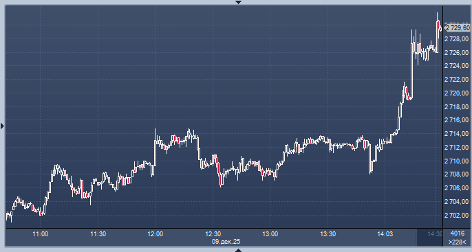 График фьючерса на индекс Мосбиржи интервалами в 1 минуту