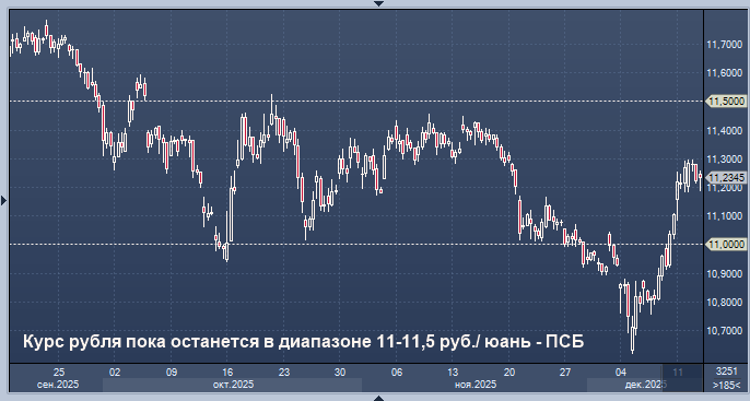 "Считаем, что среднесрочный период доминирования продавцов валюты на рынке еще не подошел к концу. На текущей неделе ждем боковое движение курсовых котировок при сохранении их повышенной волатильности, - пишет аналитик. - До конца 2025 года также прогнозируем сохранение баланса спроса и предложения валюты в текущем торговом диапазоне (11-11,5 руб. за юань). Однако к концу декабря допускаем тяготение курса к нижней границе данного коридора за счет роста предложения валюты со стороны экспортеров в преддверии пика налоговых выплат (29 декабря)".