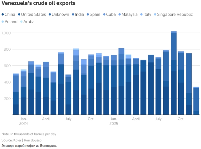 Агентство Reuters сообщило, что США готовятся к перехвату большего числа судов с венесуэльской нефтью, а также ввели новые санкции против семьи Мадуро, шести нефтяных танкеров и связанных с ними судоходных компаний.