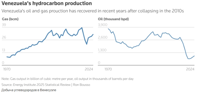 Ужесточение ограничений также привело к снижению добычи нефти в Венесуэле. В ноябре она сократилась примерно на 150 000 баррелей в сутки по сравнению с предыдущим месяцем и составила 860 000 баррелей, после нескольких месяцев, когда добыча держалась выше 1 миллиона баррелей, согласно данным Международного энергетического агентства.