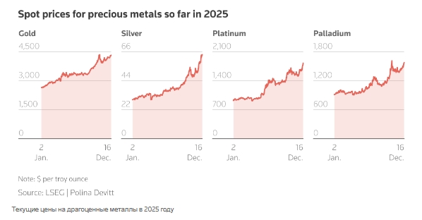 Филип Ньюман из Metals Focus подчеркнул, что дополнительные риски, такие как независимость Федеральной резервной системы США, тарифные споры и геополитическая напряженность, включая конфликт на Украине и противостояние России и Европы, также способствуют росту цен на золото.