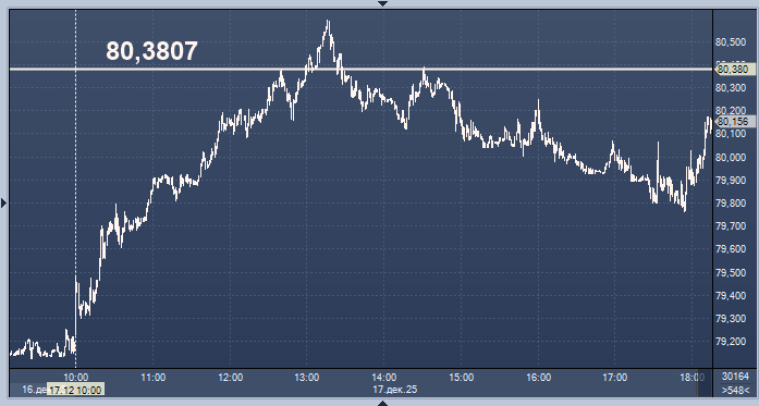 - 80,3807 рубля за 1 доллар