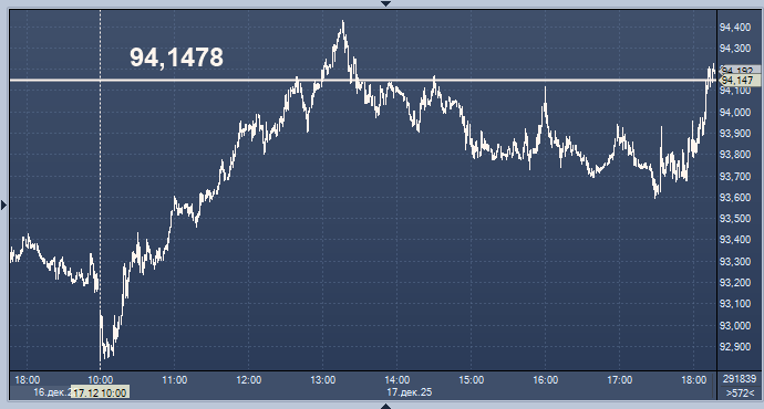 - 94,1478 рубля за 1 евро