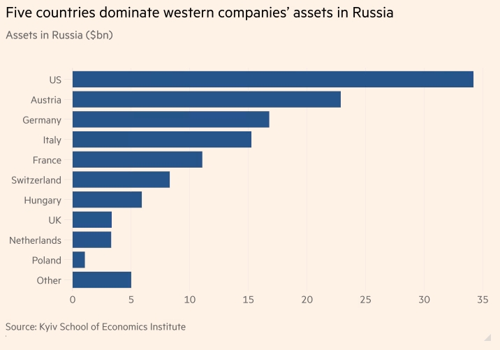 Согласно данным Института экономики Киевской школы, на 2024 год совокупные активы западных компаний в России оцениваются не менее чем в 127 миллиардов долларов. При этом 1903 компании либо покинули страну, либо сократили свою деятельность после начала специальной военной операции в Украине почти четыре года назад. Однако 2315 иностранных компаний продолжают работать в России.