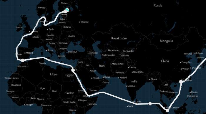 Маршрут СПГ-танкера Kunpeng из Китая в Балтику. Источник: Bloomberg