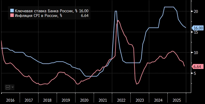 «Регулятор на фоне неоднородных данных в экономике сохранил в пятницу, 19 декабря, ранее выбранный подход — аккуратное смягчение монетарных условий. Аномальное торможение недельной инфляции в декабре не перевесило будущих инфляционных шоков (НДС, бюджетные риски). В 2026 году по-прежнему ожидаем медленное снижение ключевой ставки до 13% годовых в конце декабря», — пишет эксперт.