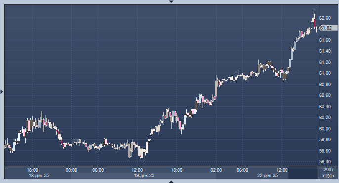 В понедельник цены на нефть выросли после того, как США перехватили нефтяной танкер в международных водах у побережья Венесуэлы. Напряжённость в конфликте между Россией и Украиной остаётся высокой, что вызывает опасения по поводу возможных перебоев в поставках чёрного золота.